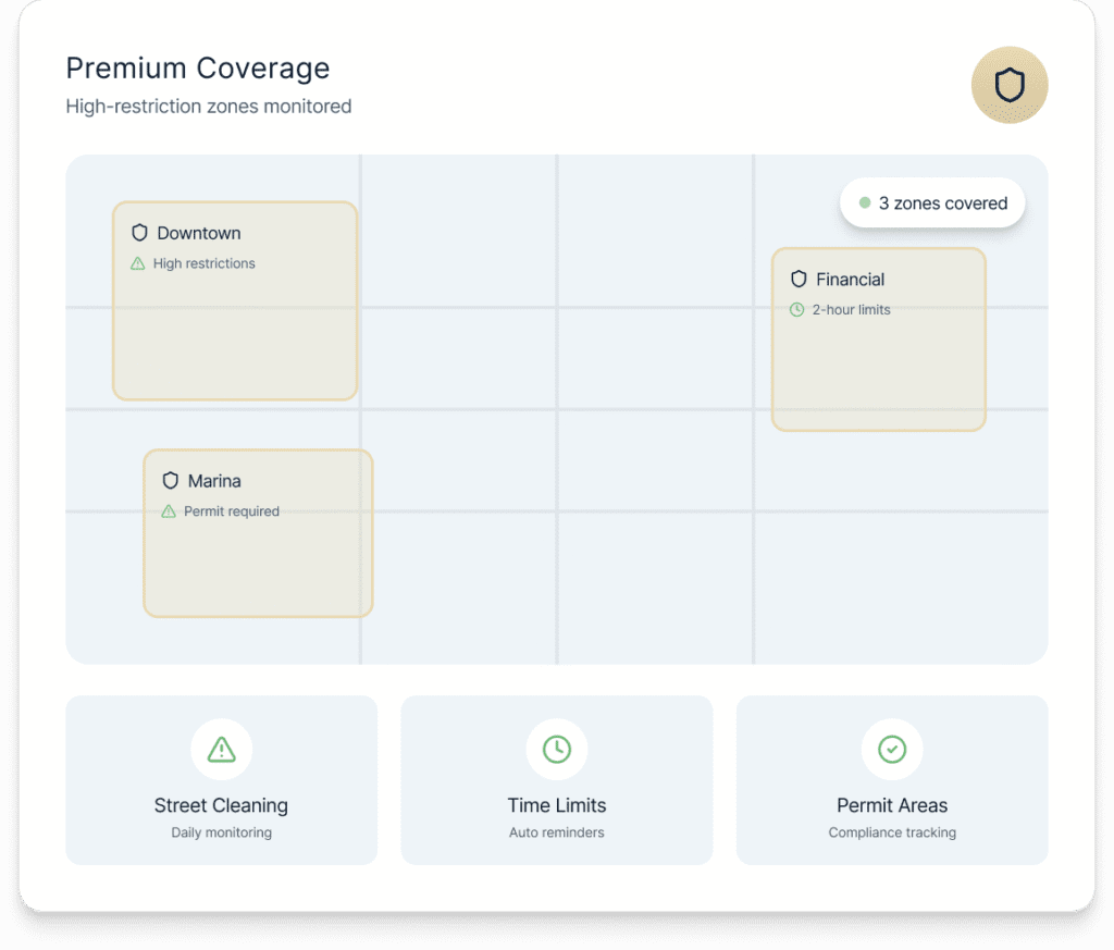 Parking restrictions are harsher in premium zones, and availability is lower. Curbswap offers advanced coverage in these areas with smarter dispatch timing, optimized fallback spots, and faster driver response. Perfect for residents facing the strictest LA parking conditions. Designed for WeHo, DTLA, Santa Monica, and other high-enforcement areas.